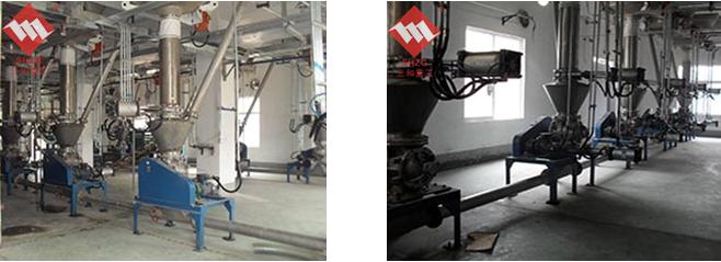 系统优点:输送过程稳定,易实现一处向多处分散输送,且管道内为正压,即使管道泄漏也不会对输送的物料造成污染。
