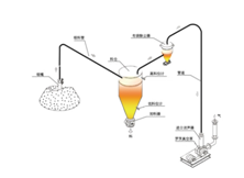 本系统一般采用罗茨真空泵作为气源,吸嘴作为供料装置,物料同大气一起从入口处进入输送管道,通过负压气流输送到末端收料仓,通过料气分离装置过滤后的气体进入罗茨真空泵并排入大气。